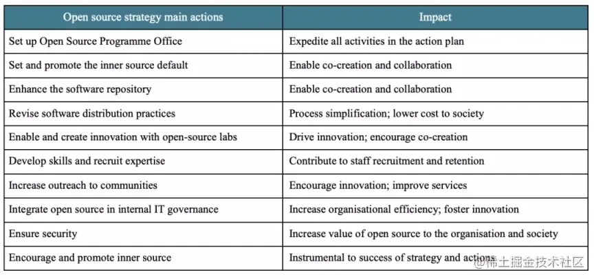 2020-2023 年开源软件战略规划中指出的主要动作和影响