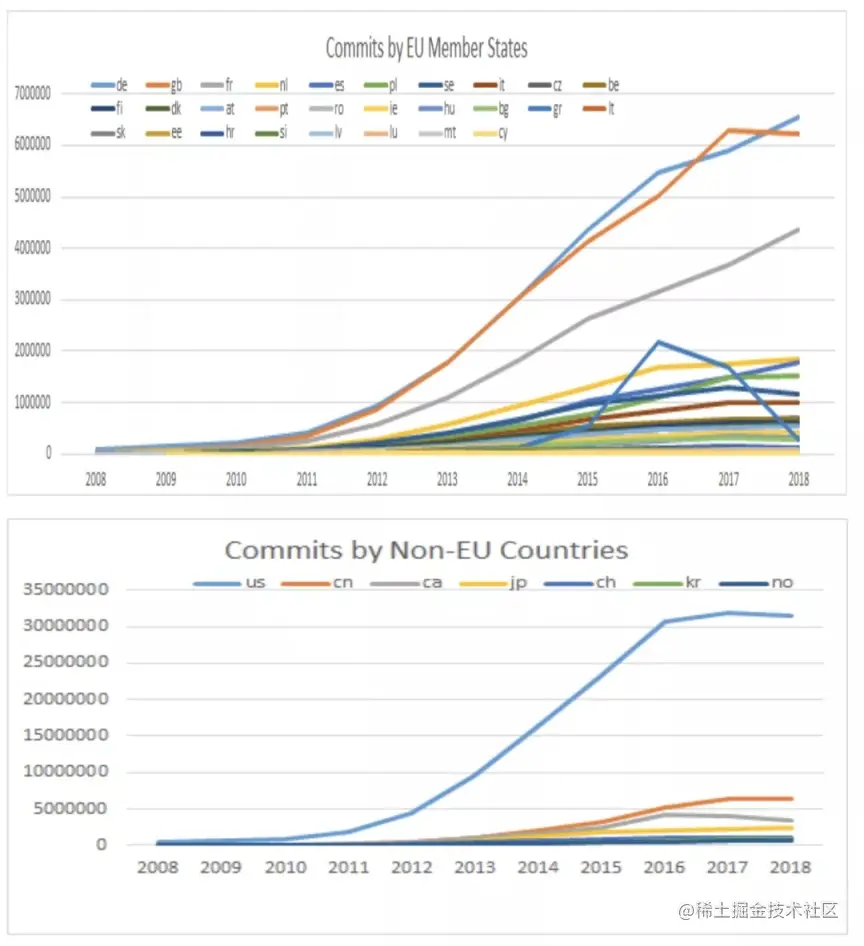 报告中展示的对欧盟各国和其他国家的 GitHub Commits 数