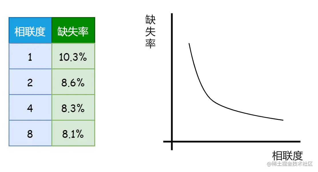但相对于直接相联来说提高相联度也增加了命中时间,会出现收益递减的现象。