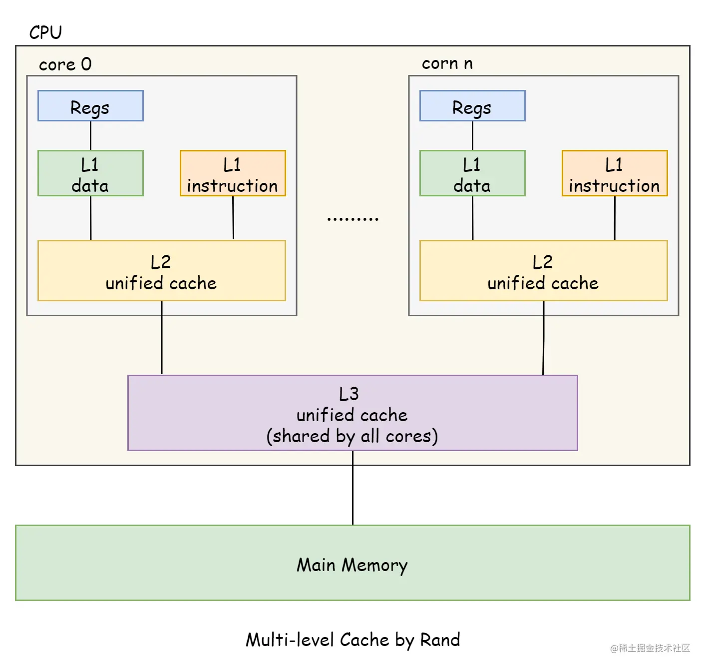 但是书上又经常说主存与 CPU 进行数据交互,这就略去了 cache 在这之间的作用,但是我们也不要纠结谁对谁错,平常所学习的都是理论,理论与现实总是有差距,学习知识只要保证能够在现有的知识结构上自圆其说就行。