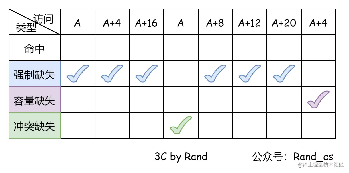 容量缺失(Capacity):顾名思义,由容量导致的缺失,即采用全相联结构也会出现的缺失类型