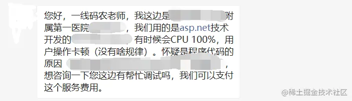 这个月初,一位朋友加微信求助他的程序出现了 CPU 偶发性爆高,希望能有偿解决一下。