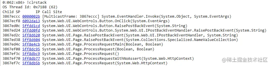 3867ed1c 5ffdd0fd (MethodDesc 5fdff5e0 +0xd System.Web.UI.WebControls.Button.System.Web.UI.IPostBackEventHandler.RaisePostBackEvent(System.String))