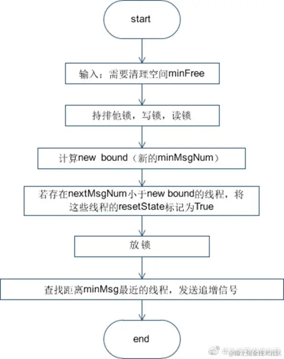 NOTE:清理共享消息队列过程,实际上是推进minMsgNum的过程,同时对所有没有及时追增失效消息的线程执行全失效。