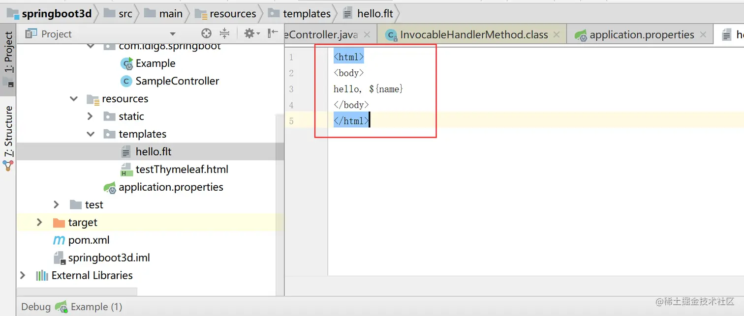 return "hello"; //默认为src/main/resources/templates/hello.flt