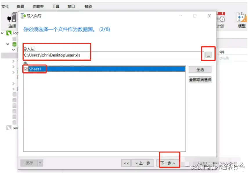 6.然后需要添加excel表格的路径,并且选择所需添加内容所在的sheet,并点击下一步