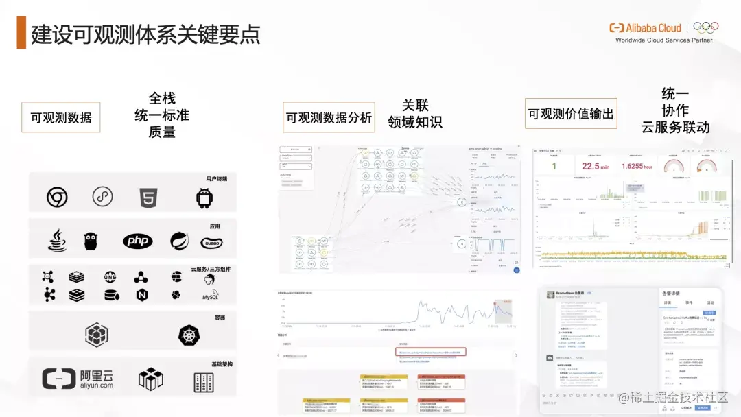 可观测能力带来了巨大业务价值的同时,也带来了不小的系统建设挑战。这不仅仅是工具或技术的选型,更是一种运维理念。这其中包括可观测数据的采集、分析以及价值输出三个部分。