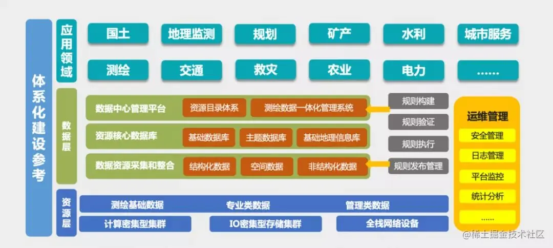 最后一层是数据层,它是所有业务的“地基”,其中包含了 IT 的核心三大元件—计算、网络、存储。如果没有这三大法宝,所有目标将化为乌有,“数字孪生城市”就是一句空话。因为所有数据都将在数据层进行加工,是内业生产中真正数据的载体。