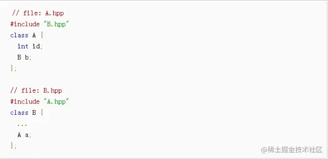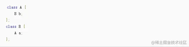 不管A和B是否定义在同一个文件中,c++永远无法解决如下形式的循环依赖(后文解释原因):