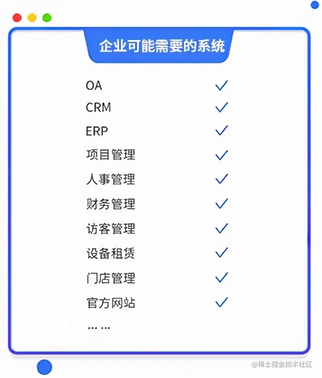 传统管理系统经过多年发展,早已成熟而且上手就能用,但也避免不了交付周期长、系统与系统之间数据不互通等问题。
