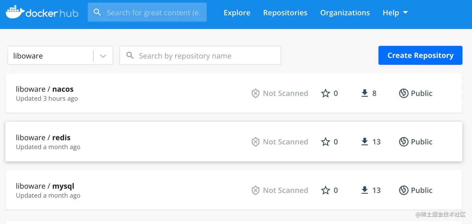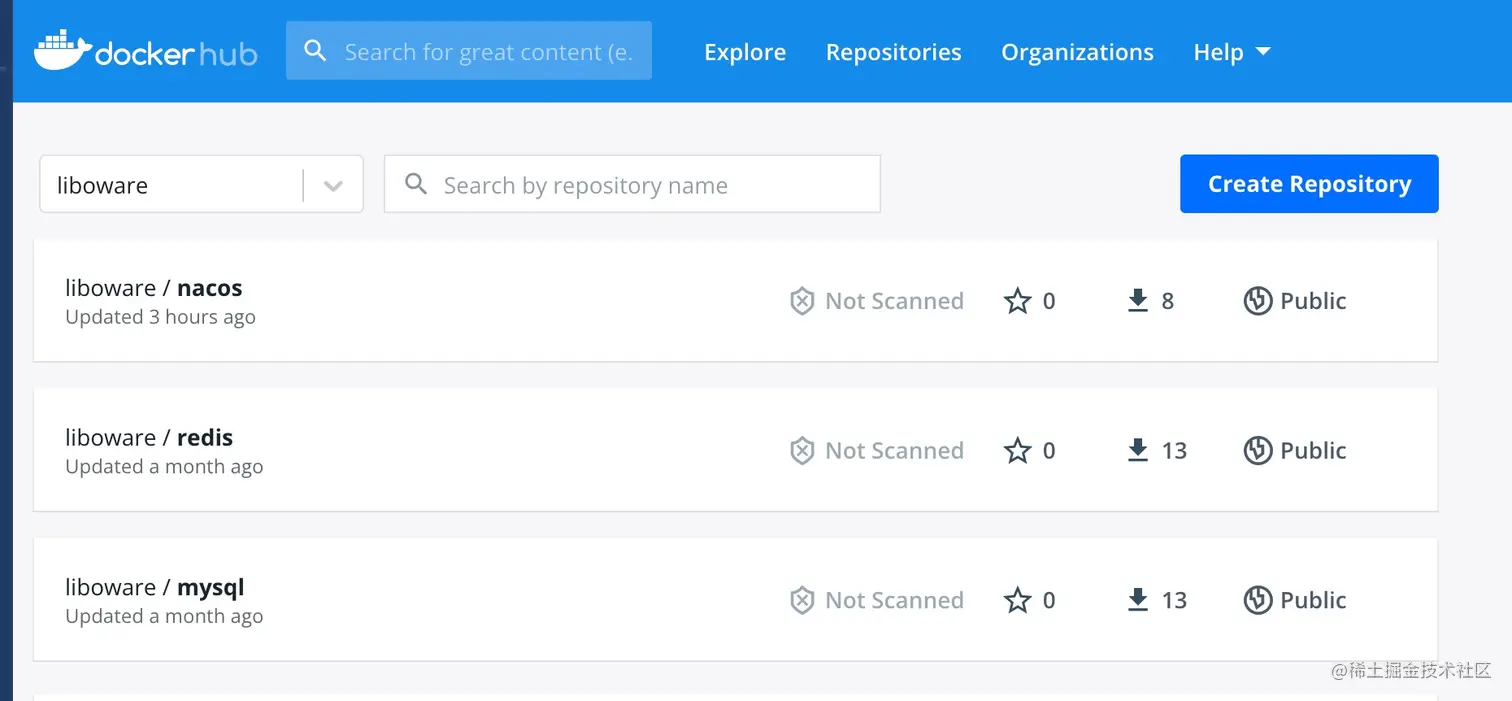 [root@localhost ~]# docker tag nacos:v1 liboware/nacos:v1