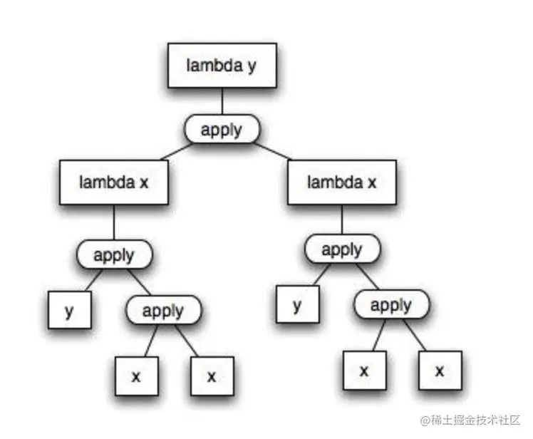 这张图看起来像一个倒着的 Y,因此命名为 Y 组合子。