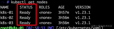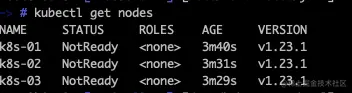 完成上述操作之后使用kubectl get nodes查看当前节点状态: