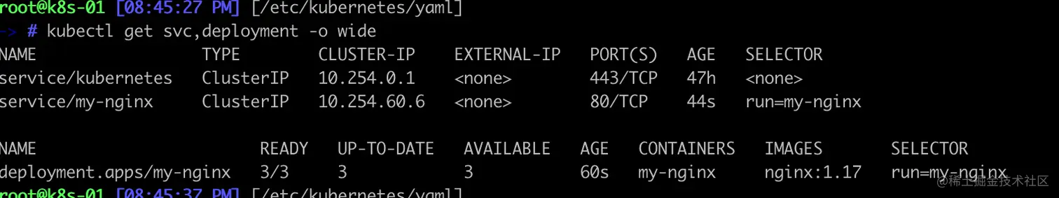 保存并命名为my-nginx.yaml,下发到其中一个master。然后使用