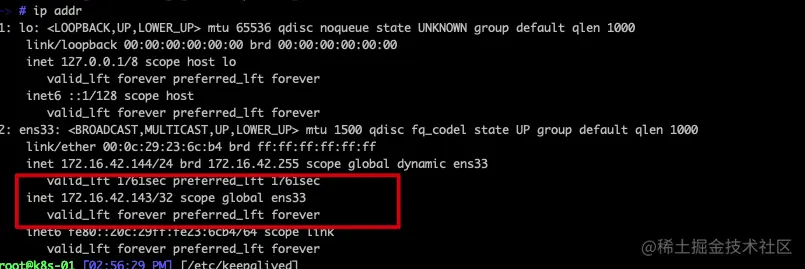 准备了三台虚拟机 ,操作系统都是ubuntu20.04 , ip分别为172.16.42.144、172.16.42.145、172.16.42.146,hostname分别为k8s-01、k8s-02、k8s-03。虚拟IP为172.16.42.143