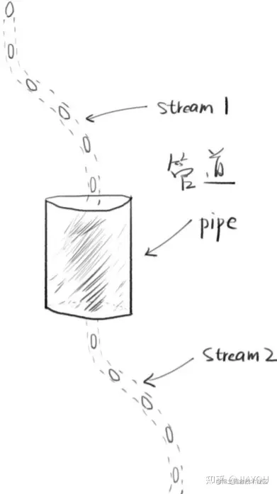 两个流可以用管道相连,stream1的末尾连接上stream2的开端,只要stream1有数据,就会留到stream2