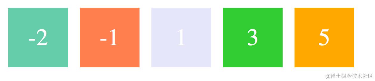 在 HTML 结构中,虽然 -2,-1 的 item 排在后面,但是由于分别设置了 order,使之能够排到最前面。