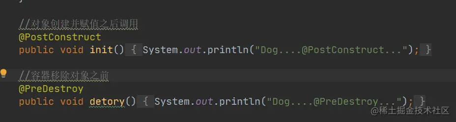 @PostConstruct:在bean创建完成并且属性赋值完成;来执行初始化方法
