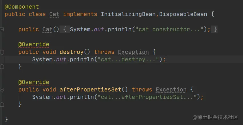 2、通过让Bean实现InitializingBean(定义初始化逻辑), DisposableBean(定义销毁逻辑);