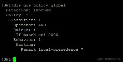 [SW1]qos apply policy 1 global inbound