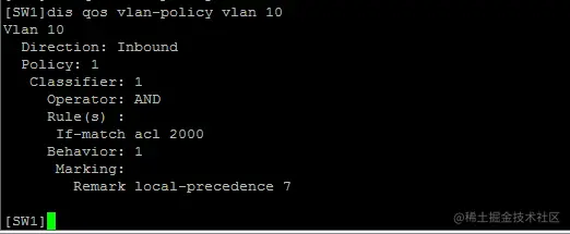 [SW1]qos vlan-policy 1 vlan 10 inbound