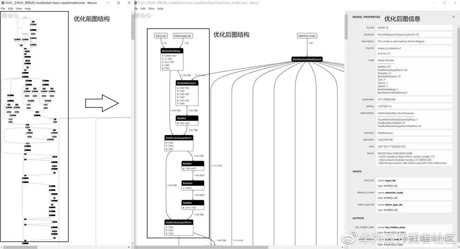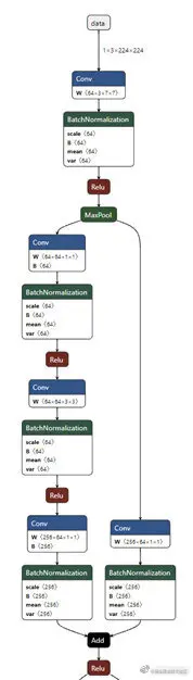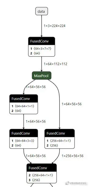 下图中左边为resnet-50模型优化前和优化后的Graph结构。CV类型的模型常用的融合手段是将线性计算和激活进行融合,如Conv + BN + Relu进行融合计算。