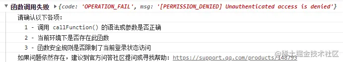 这时可以查看访问权限,以云函数为例: