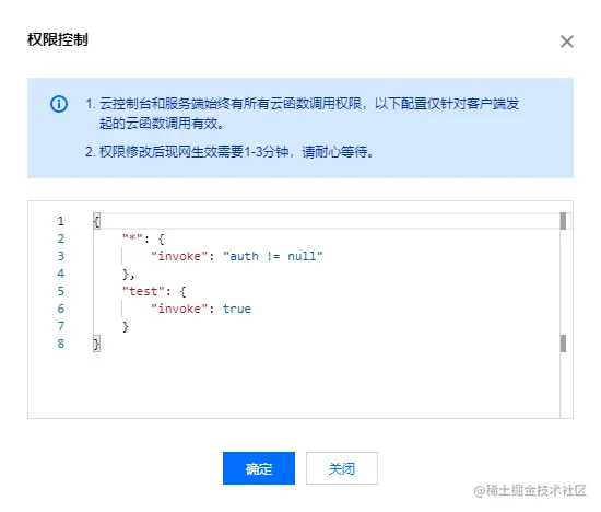 点击云函数的权限控制按钮