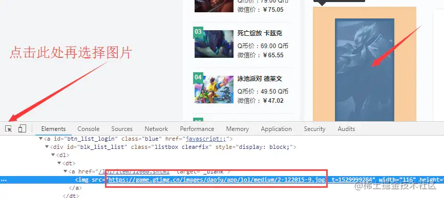 - 通过F12锁定图片取得了第一张图片的URL,(game.gtimg.cn/images/daoj…)