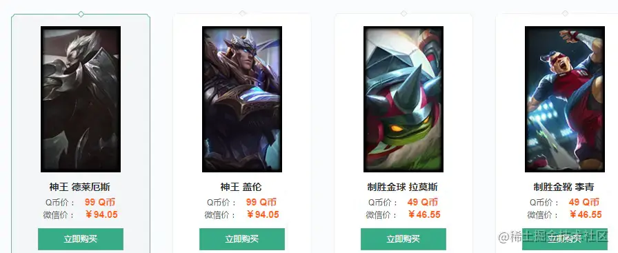 - 皮肤图片的来源问题,首先到官网去找了找,想到了道聚城皮肤专卖区,其中正好有所有我们需要的图片。