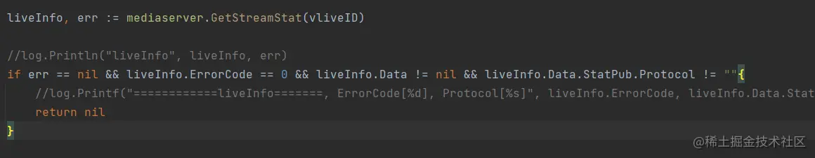接着在推流的地方加一个判断进行防护,因为该用户的版本是直接使用内核推的flv流,所以在推流前查询内核中是否已经有流在推,如果有流在推就不再次进行推送。