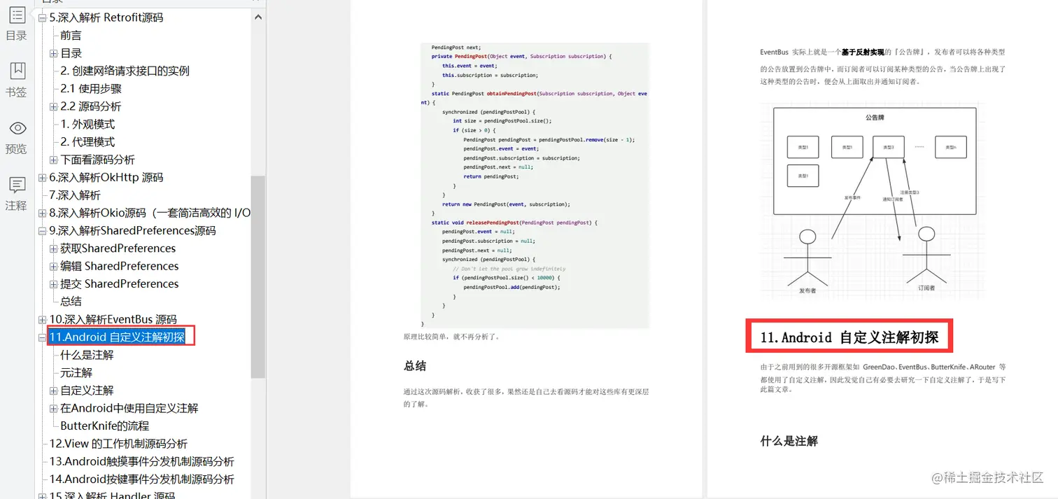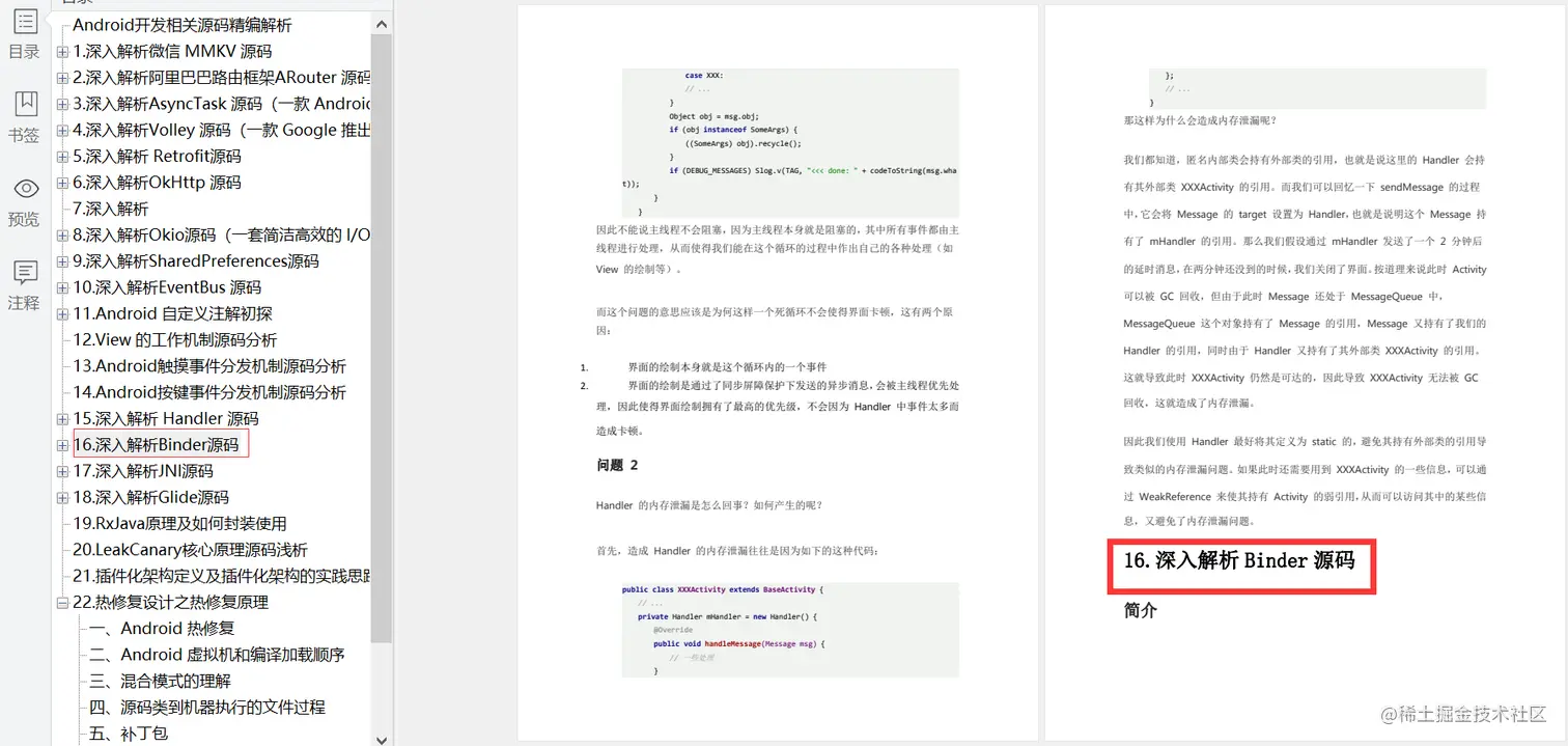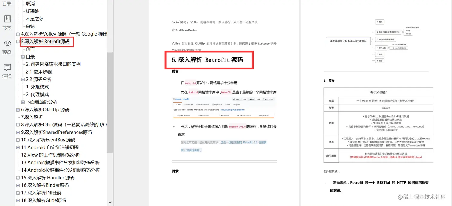 内容涵盖:微信 MMKV 源码、阿里巴巴路由框架 ARouter 源码、AsyncTask 源码、Volley 源码、Retrofit 源码、OkHttp 源码、ButterKnife 源码、Okio 源码、SharedPreferences 源码、EventBus 源码等等一系列优秀源码解析。