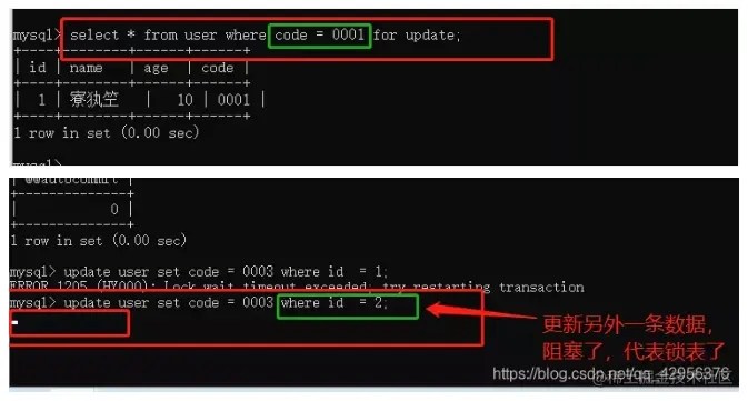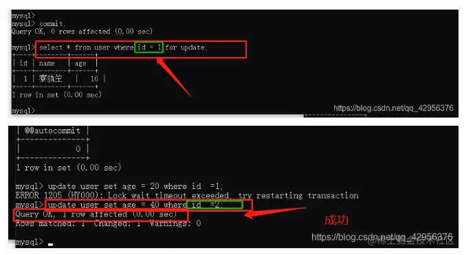 另一个事务我去更新另外一条数据,如果我更新成功了,就是锁行,失败了就是锁表。