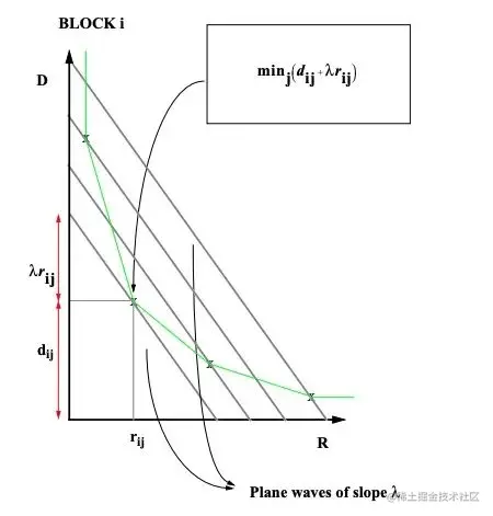 拉格朗日乘子R-D曲线斜率R-λ模型的提出者首先根据实验数据提出R-D曲线可以近似拟合为一条双曲线,再根据λ是R-D曲线斜率这一点,求得了R-λ模型: