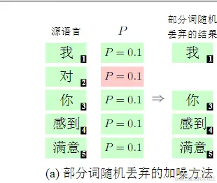 对句子中每个词依概率p随机删除,此处按词长度加权,越长越不易被删除,代码如下:
