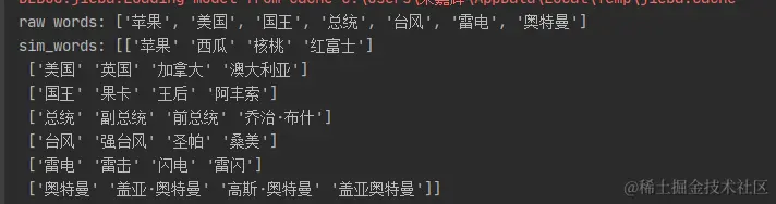 由于get_similar_tokens_raw一次只能取一个词的近义词较慢,于是改成了一次取多个词的近义词,效果如下: