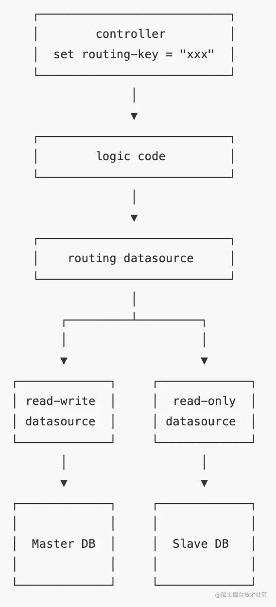 我们也可以编写一个类似的@RoutingWith("slaveDataSource")注解,放到某个 Controller 的方法上,这个方法内部就自动选择了对应的数据源。代码看起来应该像这样: