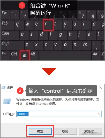 - 使用Win+R组合键唤醒运行菜单,在其名称框内输入“control”抨击键盘都回车键控制面板;