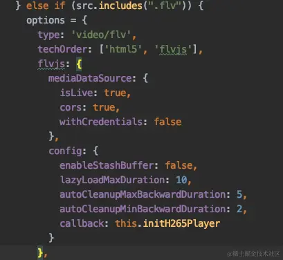 我们在flv配置文件中配置config参数减少浏览器的内存消耗,如图: