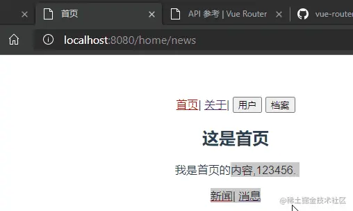created(),将路由用代码的方式手动重定向,也就是push。created() { console.log('Home组件被创建了') this.$router.push('/home/news') }, -