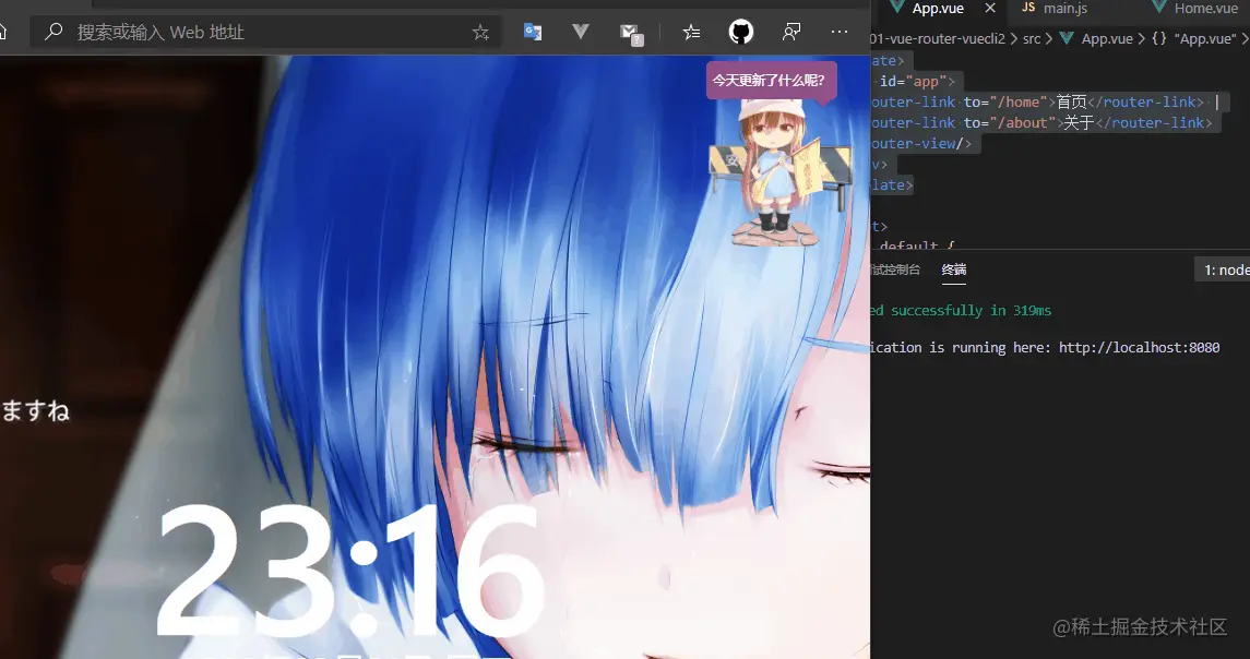 使用命令vue init webpack 01-vue-router-vuecli2创建新的vuecli2工程,等待创建完成后,使用npm run dev启动服务器,在浏览器通过 http://localhost:8080 进入工程主页。 测试通过改变hash,查看是否会刷新页面,浏览器的url地址是否改变。