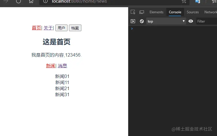 仔细看控制台发现,在跳转关于页面的时候Home组件并没有被销毁,说明keep-alive生效了。仔细查看路由配置发现,/home被默认重定向到了/home/news。所以在访问/home的时候每次出来的都是新闻。