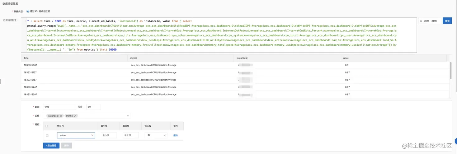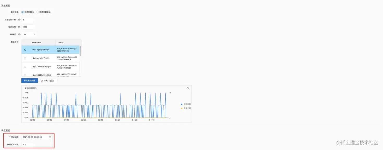 【时间范围】- 要选择当前时间的两天前,让算法有充足的数据进行学习,这样效果更好;