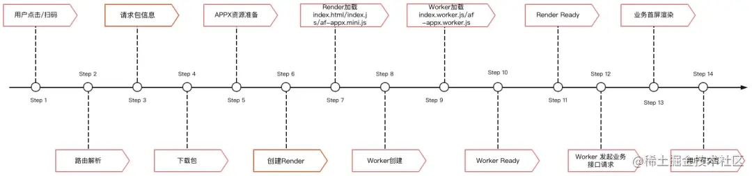 针对可优化的节点经历过去一年的针对性优化结合小程序基础容器优化能力形成最终的如下加载时序图: