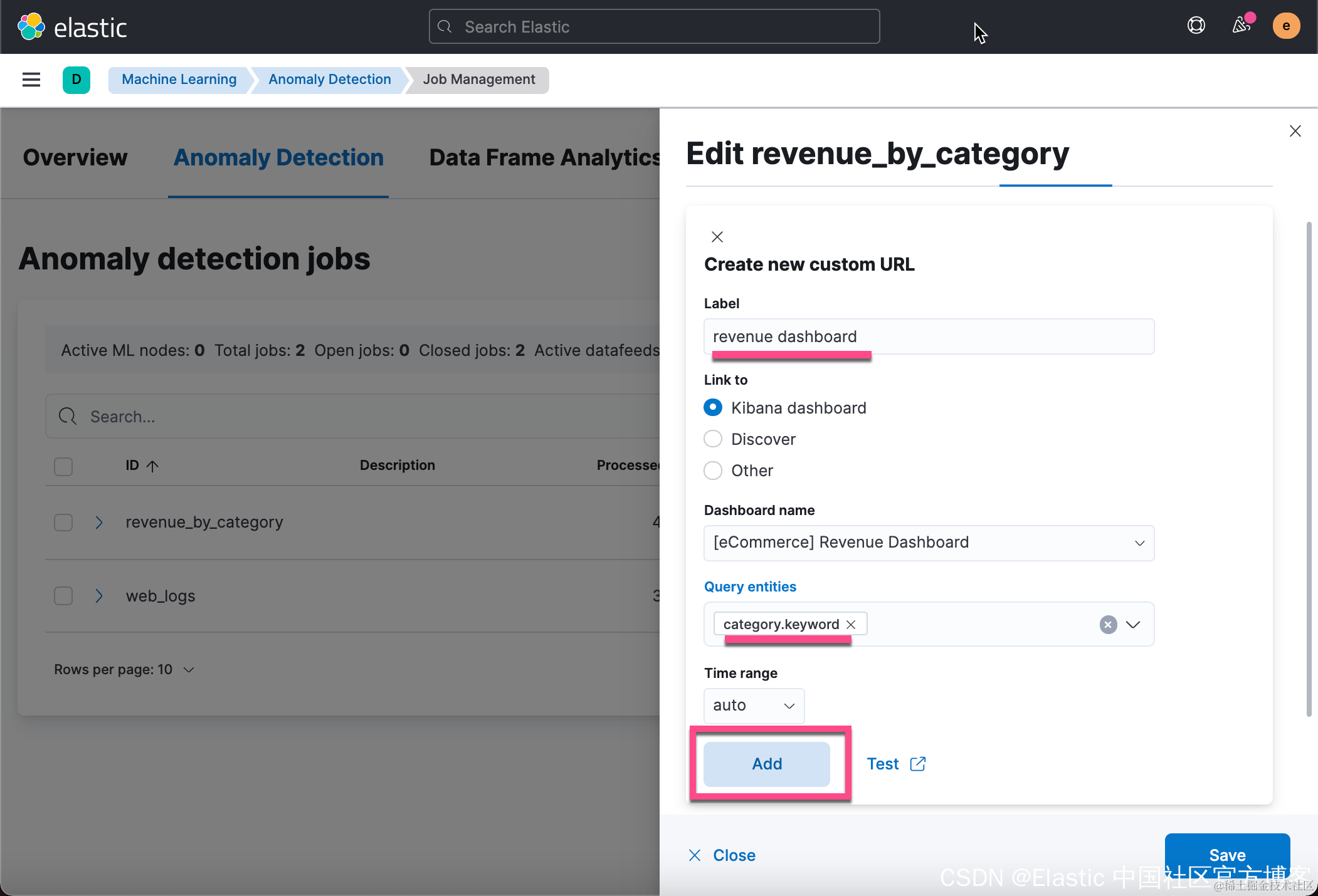 按照同样的方法,我们也可以直接链接到 Dashboard。我们来创建另外一个 Custom URLs: