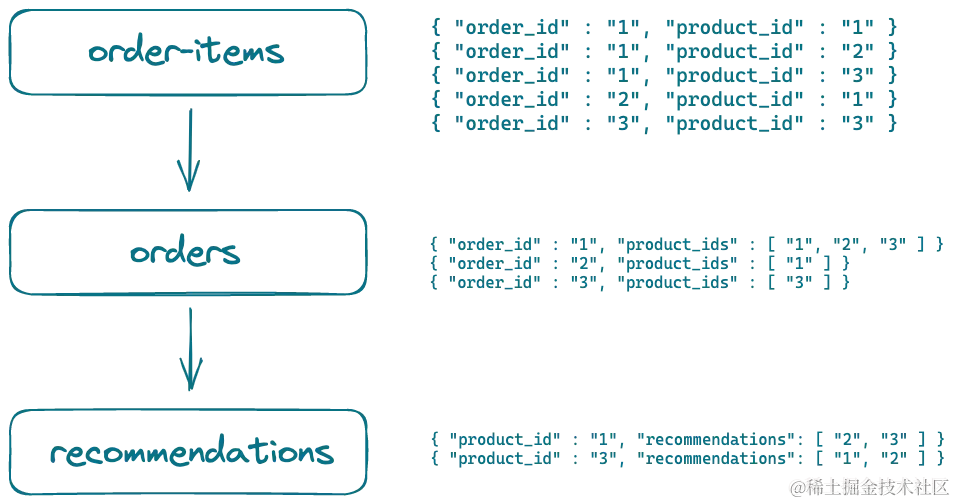 还有一件事:这种方法假设产品索引经常更新,否则那些推荐不会得到更新并且对产品推荐索引的查询更有效。请记住,即使使用单个转换,我们也已经处于通过查询检索推荐的阶段。