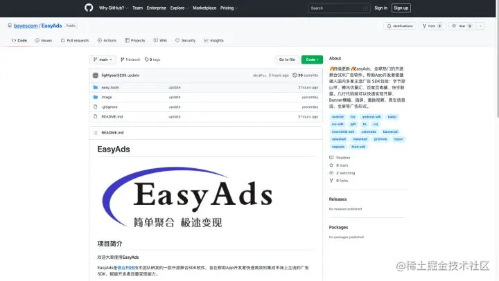 日前,倍业科技已面向Github社区和Gitee社区完全开源了广告聚合SDK EasyAds ,助力移动开发者零成本拥有自己的广告聚合SDK,全面促进开发者自研成本降低,APP广告商业化速度加快。