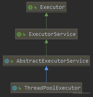从上图可以看出ThreadPoolExecutor的整体继承关系,这里可以看出设计线程池作者,根据职责分离设计了两个接口,并通过模板方法添加钩子函数。