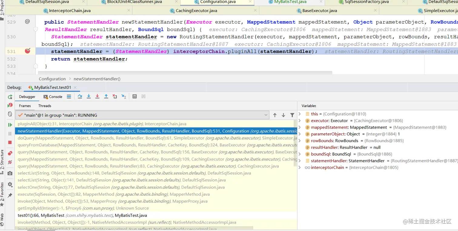 如:Executor 对象在我们获取SqlSession对象的时候会被创建,然后被拦截。