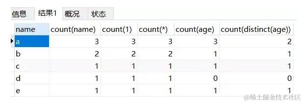count(1)包括了忽略所有列,用1代表代码行,在统计结果的时候,不会忽略为NULL的值。